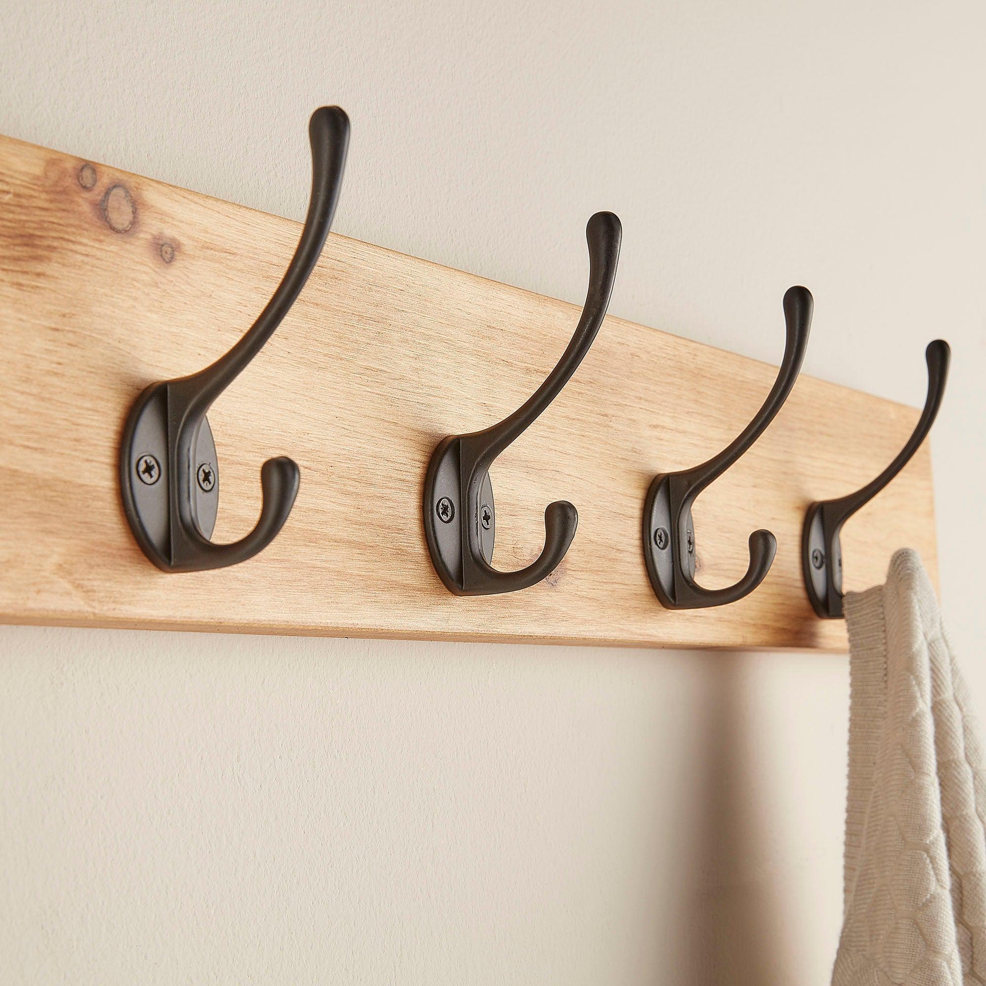 This rustic coat hanger is designed for simple, wall-mounted storage and finished to highlight the natural character of the wood. Fitted with sturdy wall-mounted hooks, it provides a practical way to organise coats, bags, and everyday items without taking up floor space.