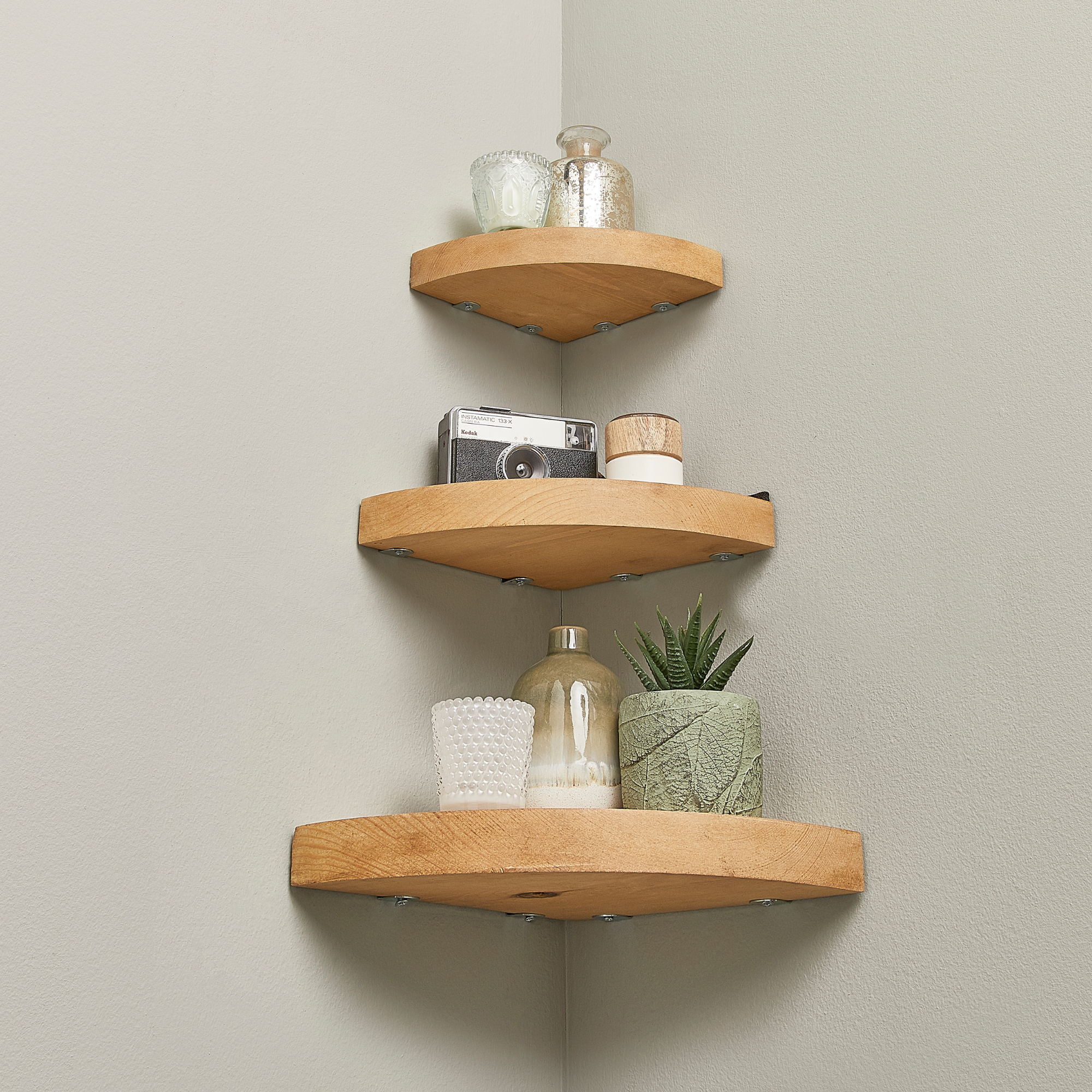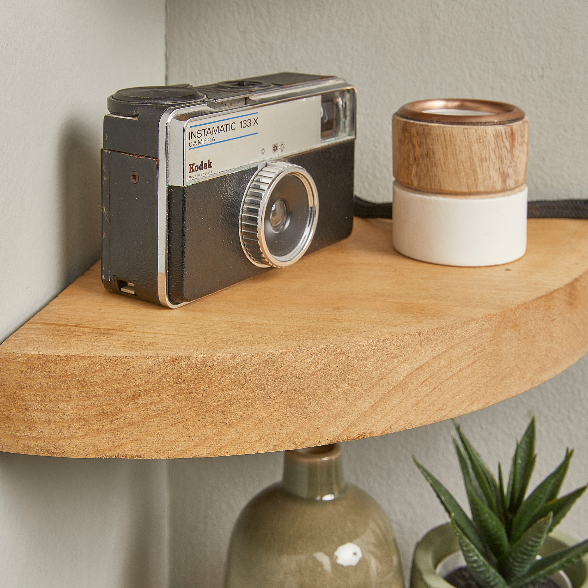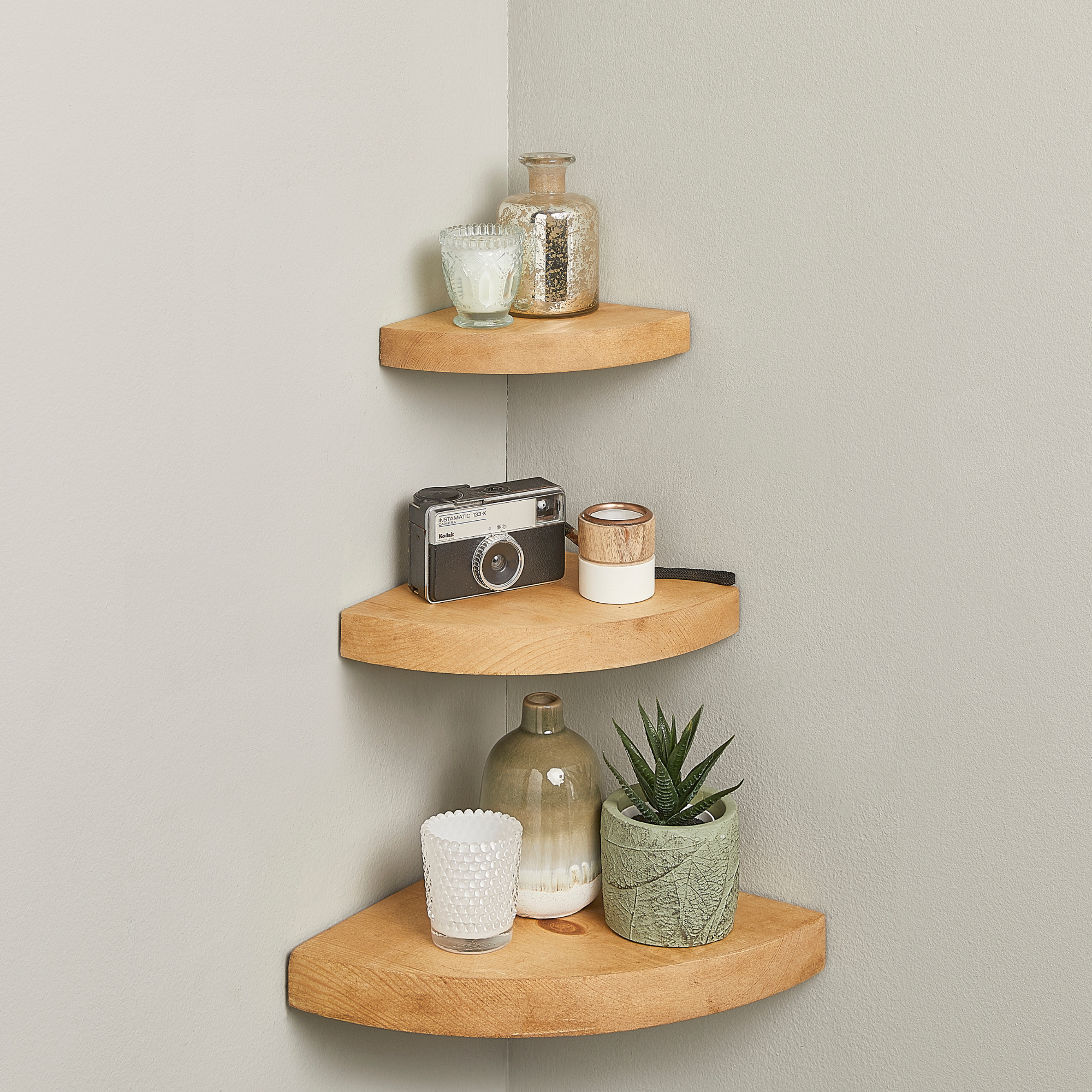 This versatile rustic corner shelf is the perfect way to add rustic charm to any room. Handcrafted from solid wood, this floating shelf will fit snugly into any corner adding extra storage and a place to display your photo frames, diffusers and other home décor accessories. If you are looking to add storage to your bathroom, bedroom, living room, kitchen or home office, this rustic wooden corner shelf is the ideal addition. It’s simple yet stylish design means that this floating shelf will compliment any décor style. It is available as a single corner shelf or can be purchased as a set of three, providing ample storage and display space.