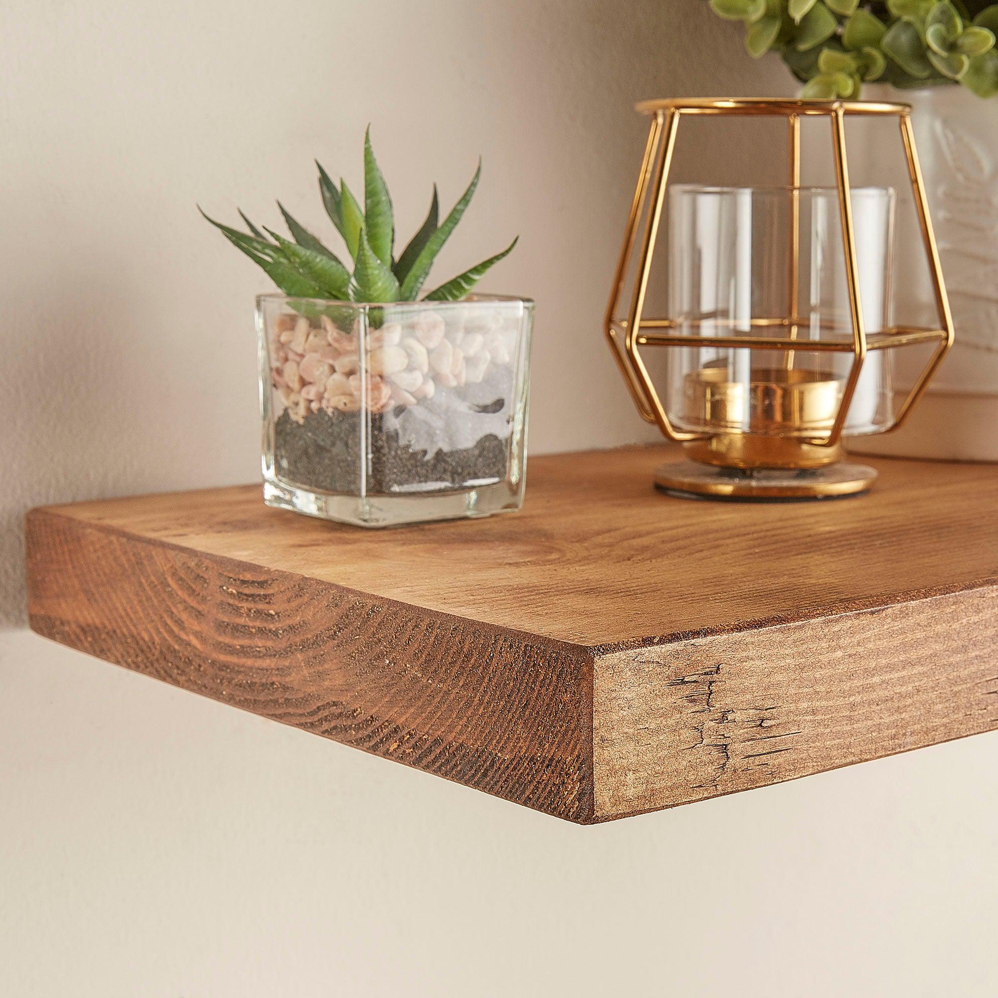This stylish rustic floating shelf is the perfect way to add a touch of style and functionality to any room in your home. Made from solid wood, this floating shelf is designed to last and look great for years to come. Its unique floating design makes it an eye-catching feature that will stand out in any room. The floating wall shelf is versatile and can be used throughout the home. It can be used as a kitchen shelf to store plates, as a floating book shelf or even as a bathroom shelf to hold toilet rolls and bathroom towels. The open concept design allows you to easily store items or organise items for easy access. It comes in a range of sizes and wood finishes, so you can choose the perfect style for your home. The wooden shelf comes with pre-drilled holes and two floating rod brackets to make installation easy.