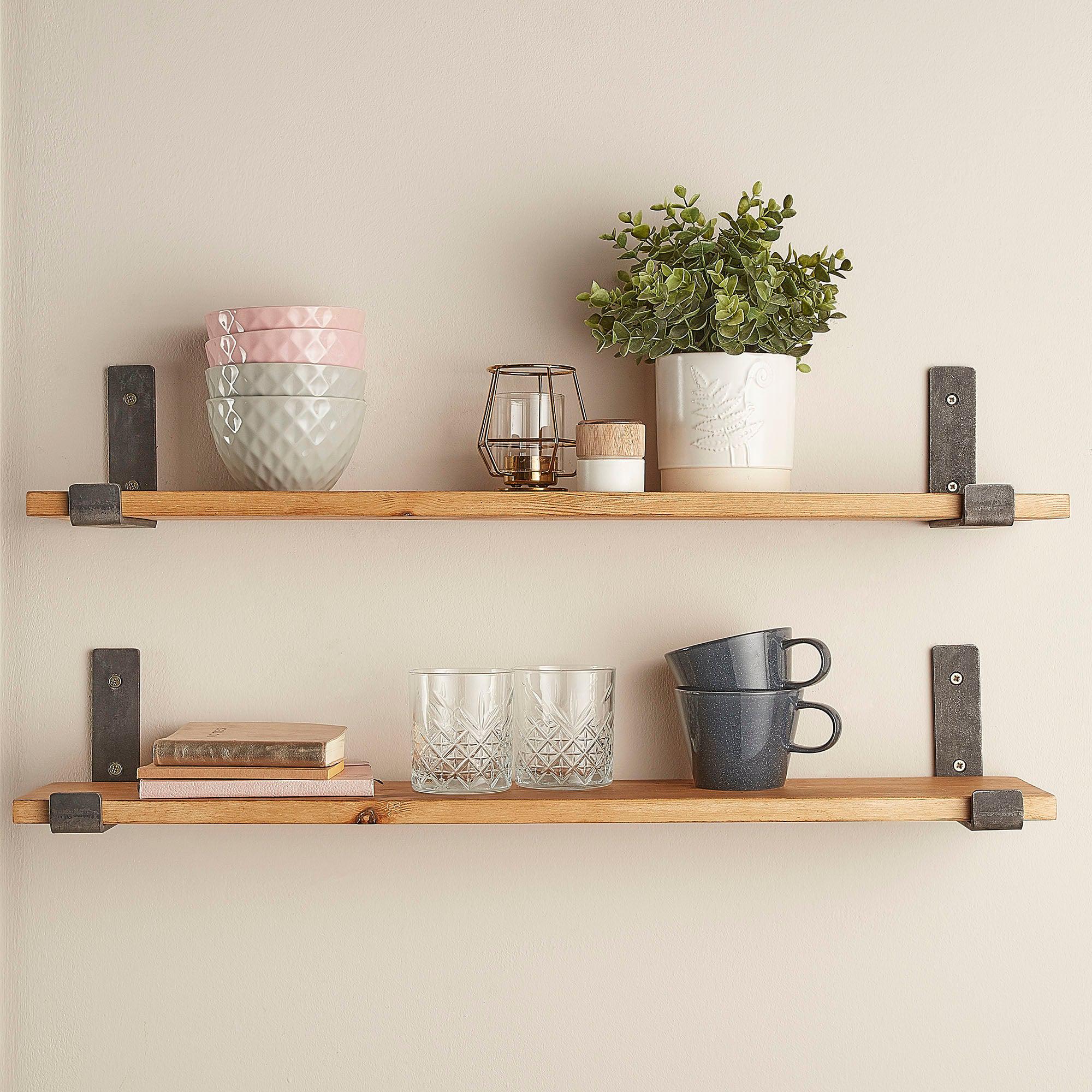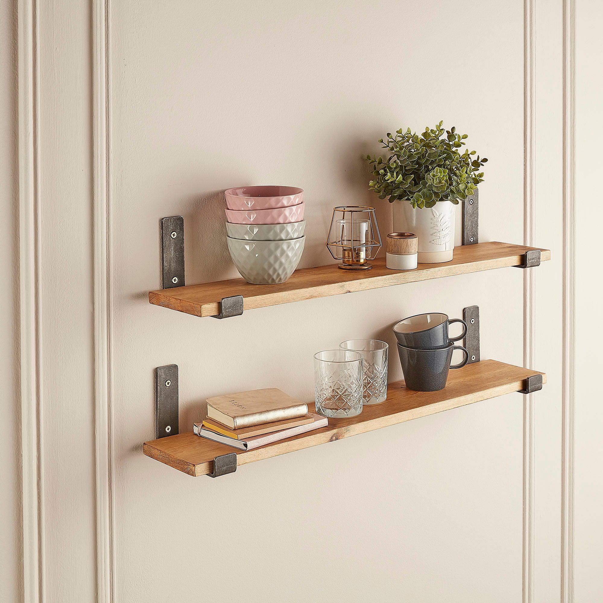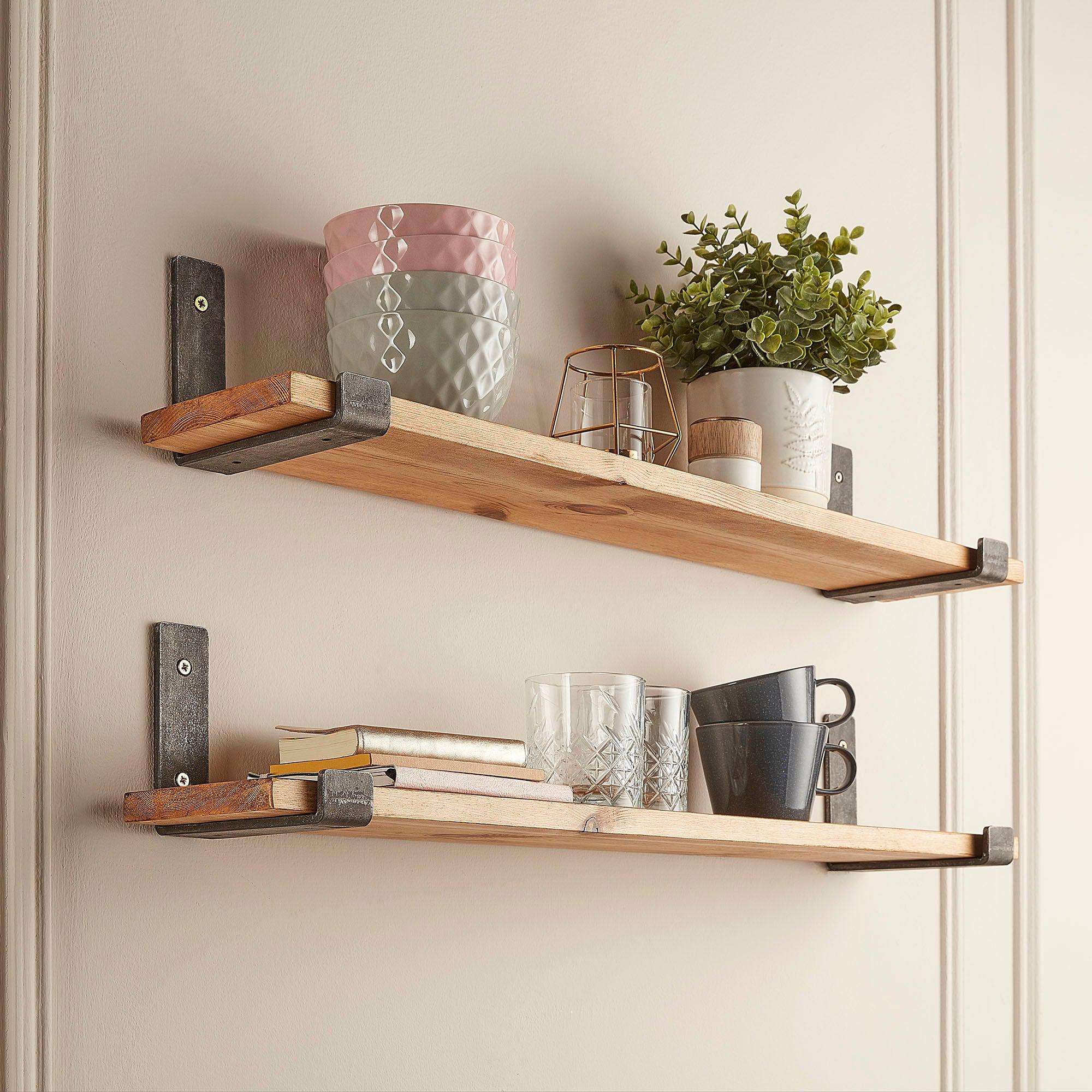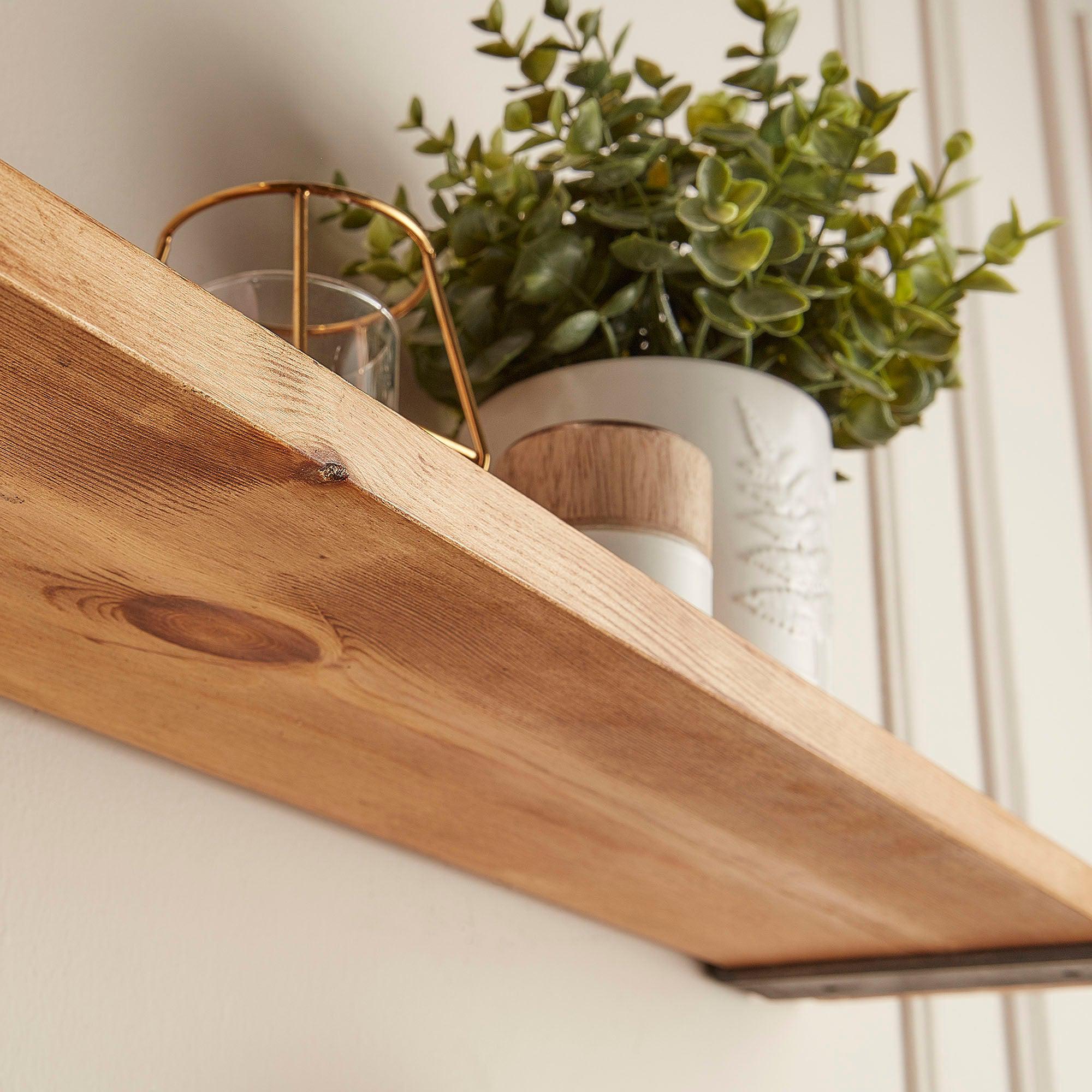 This rustic bathroom shelf offers practical wall storage in spaces where depth matters. The 15cm profile suits bathrooms and cloakrooms where wider shelves feel intrusive.