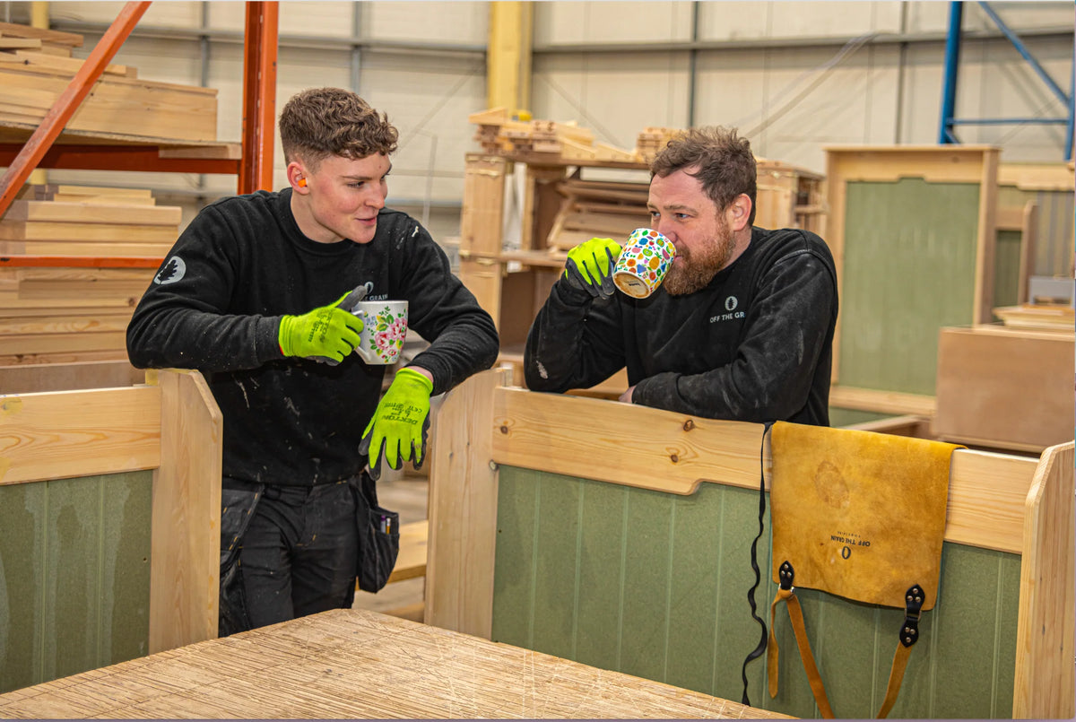 Every piece is handcrafted to order by our team of 20+ Yorkshire craftspeople. If your piece is on the bench when you visit, we can usually show you where it's up to.