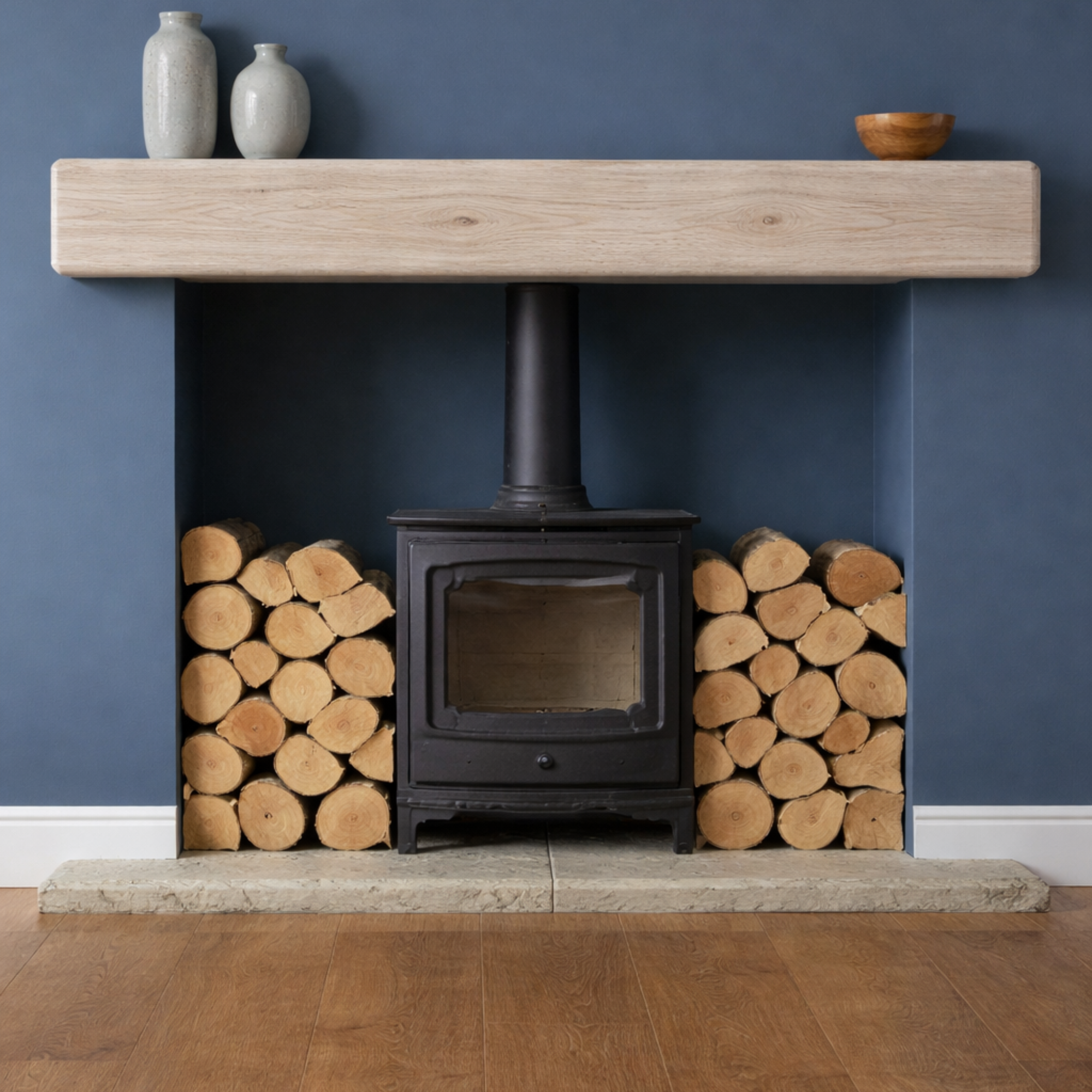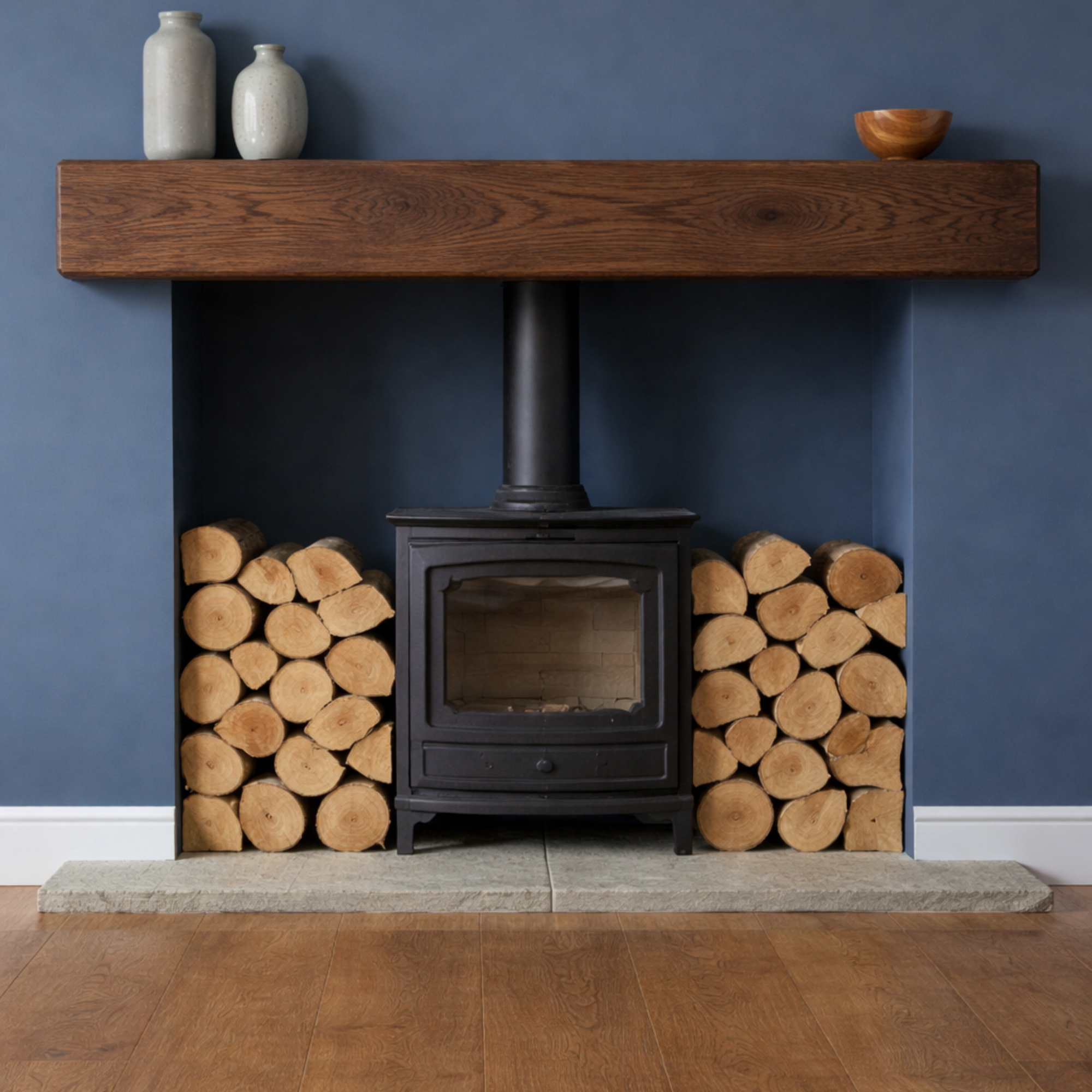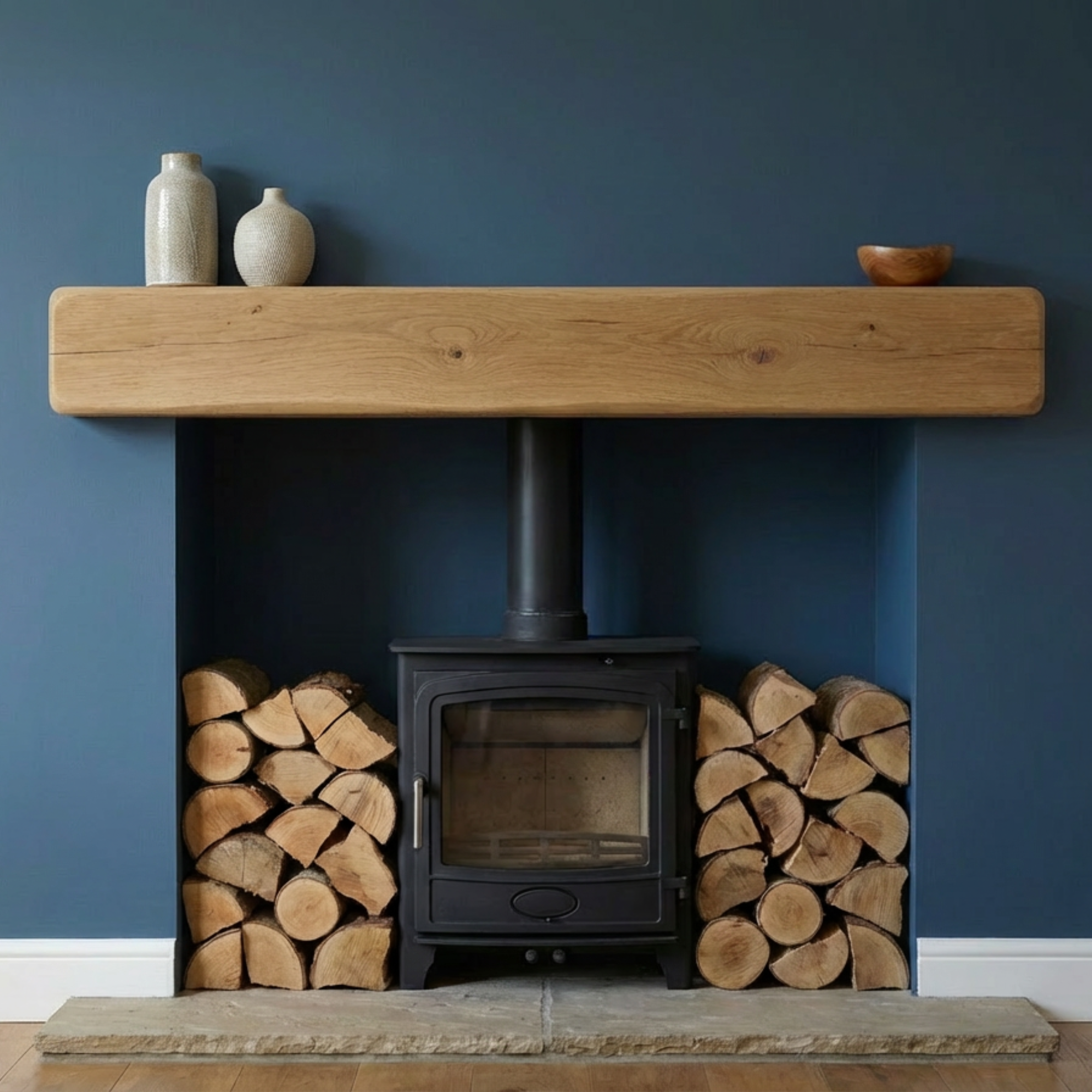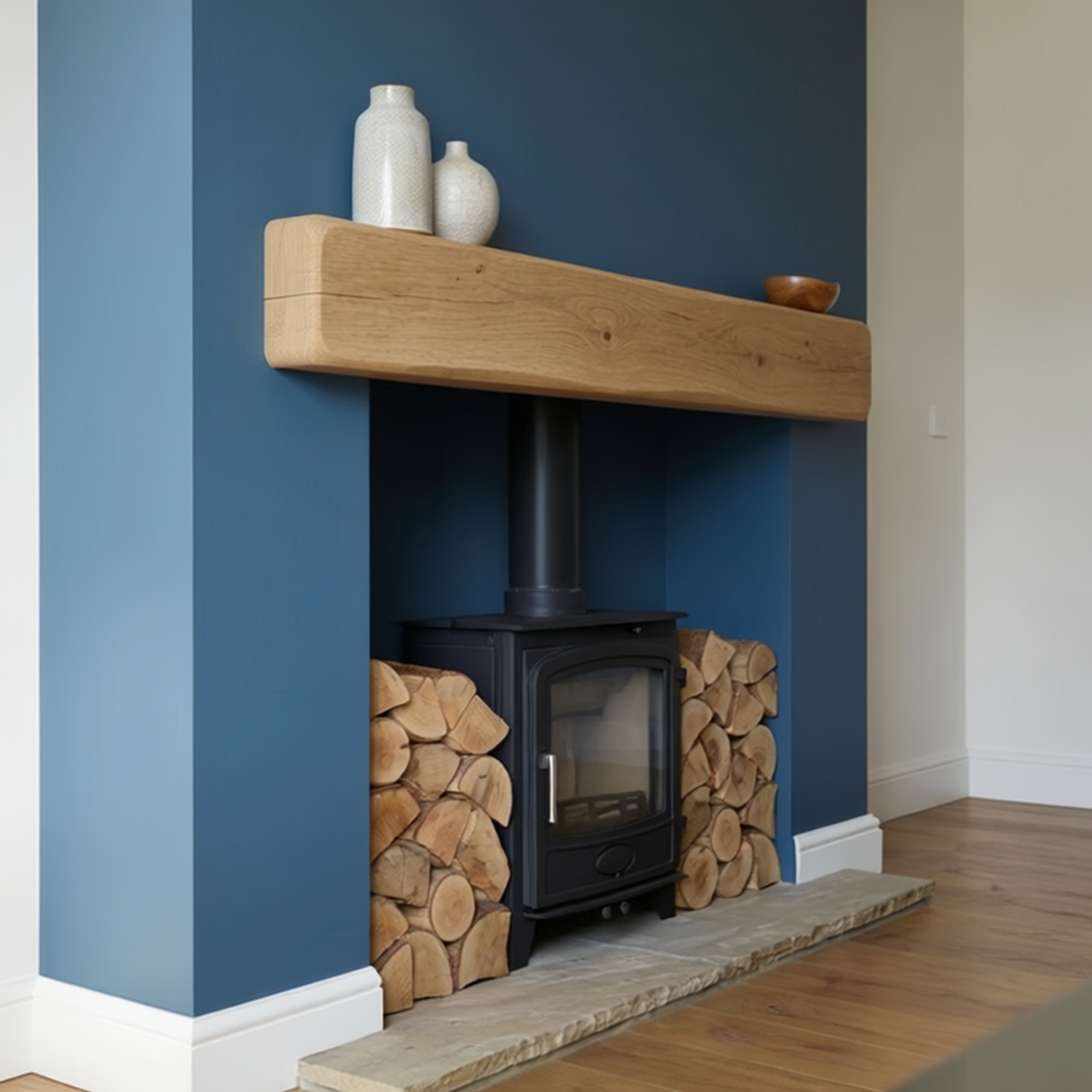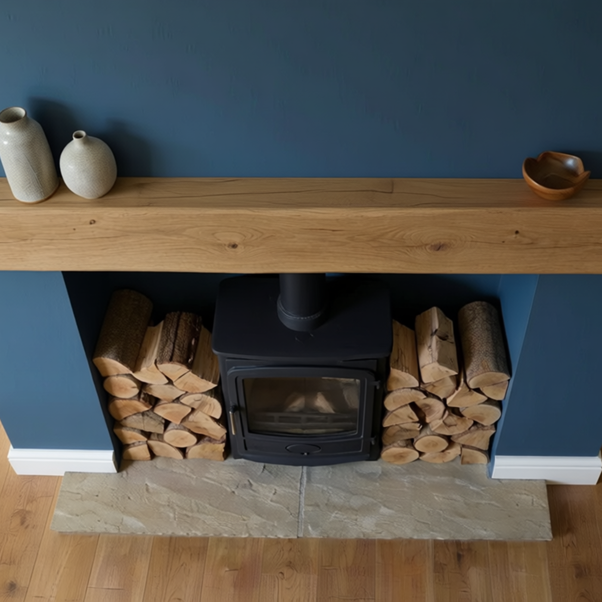 Handcrafted from solid oak, each beam displays natural grain patterns, subtle knots and gentle variations in tone. The increased height enhances the visual impact while maintaining a clean floating mantel shelf appearance.ย Each oak fireplace beam is made to order in our Yorkshire workshop using FSC-certified timber. The beam is carefully sanded and finished by hand to achieve a smooth surface while preserving the natural character of the wood.