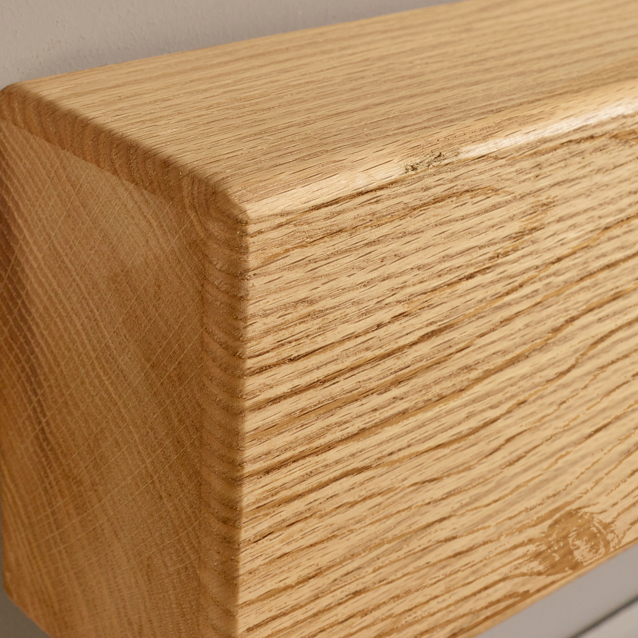 Hidden keyhole fixings allow for secure installation while maintaining a clean floating look above the fireplace. Once fitted, the beam provides a practical shelf for candles, framed photos and decorative pieces.ย Available in lengths from 30cm to 160cm, this oak mantel beam suits both compact fireplace openings and larger chimney breast features.