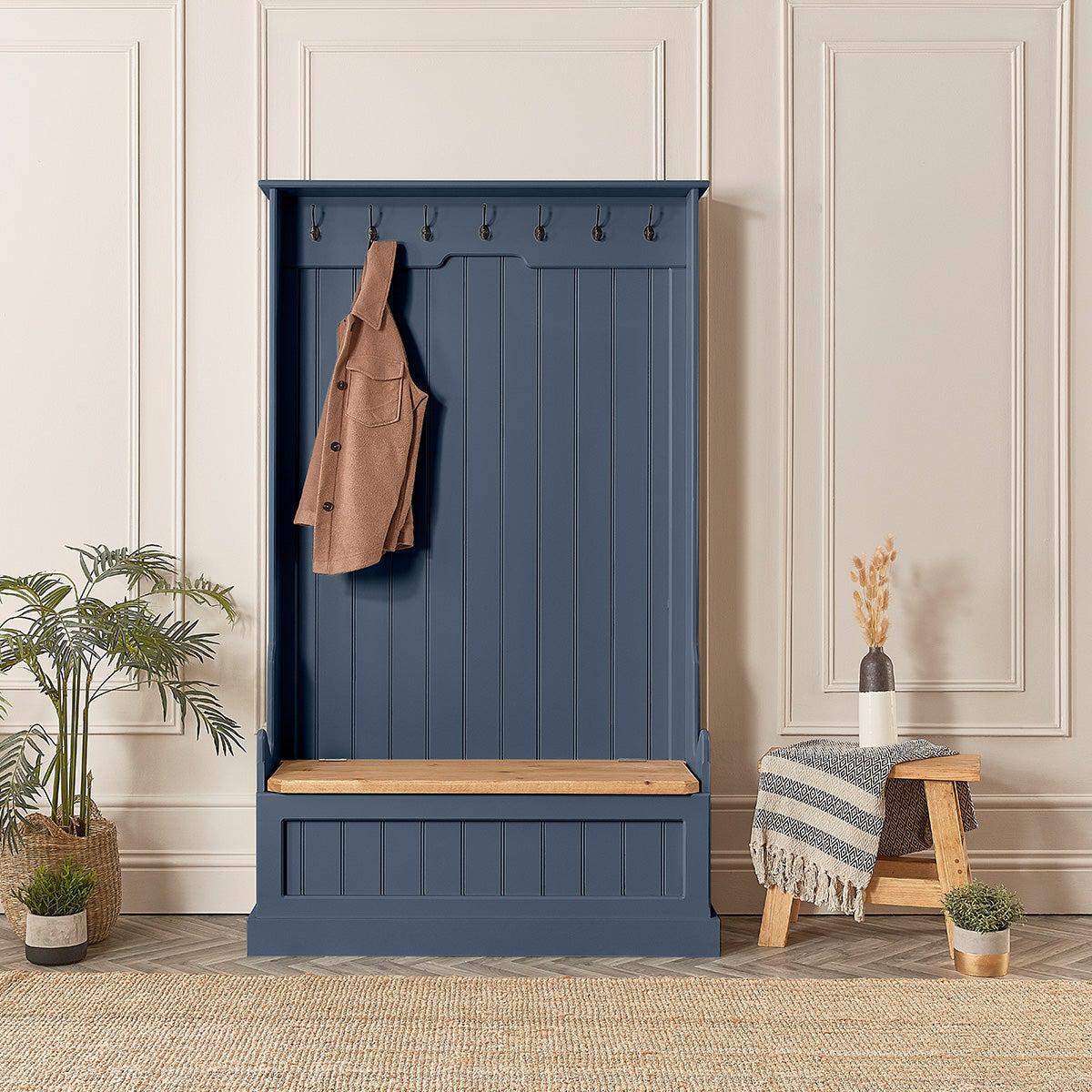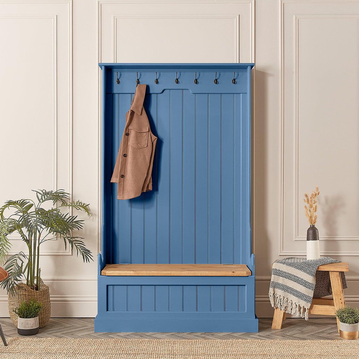 Tall Painted Monks Bench with Coat Hooks