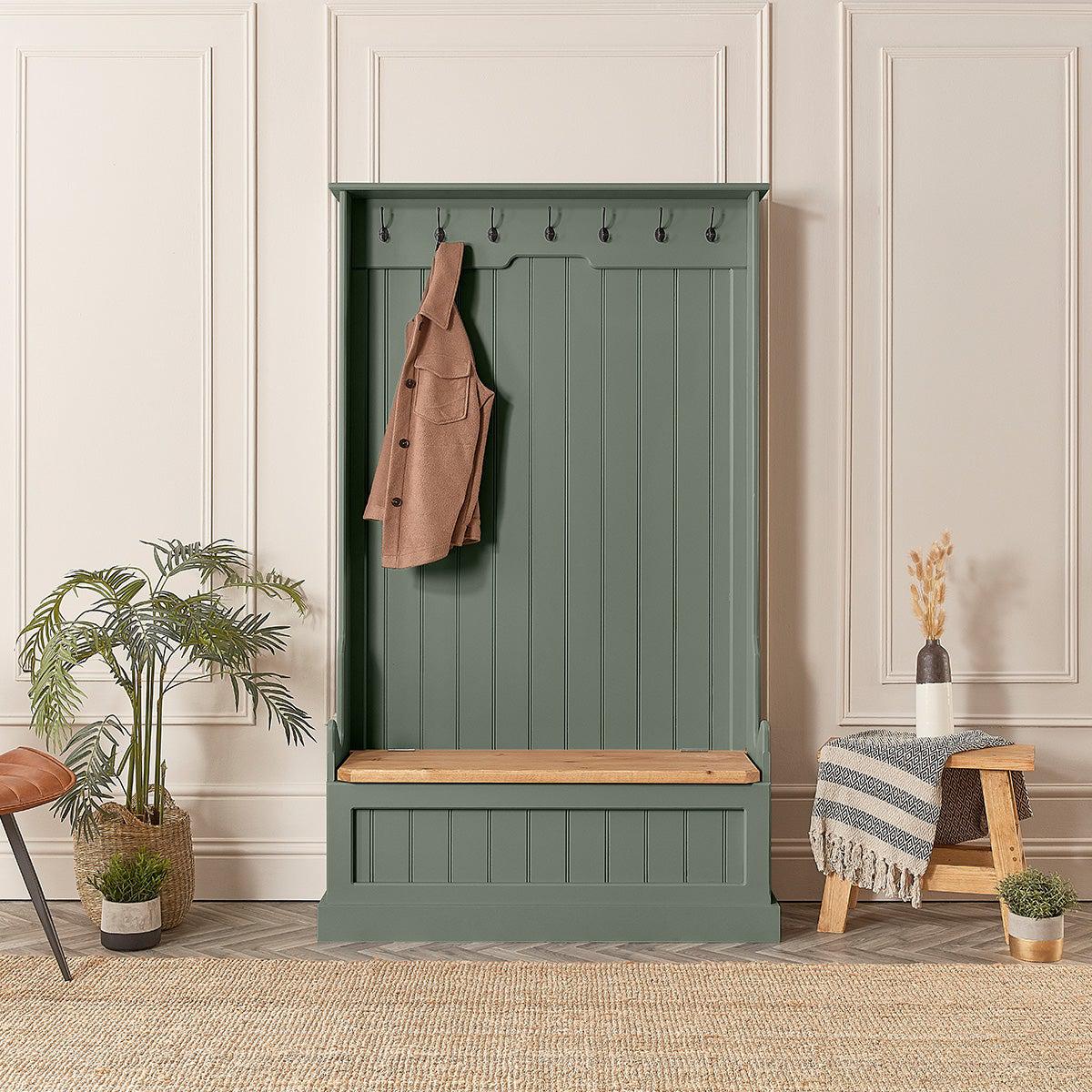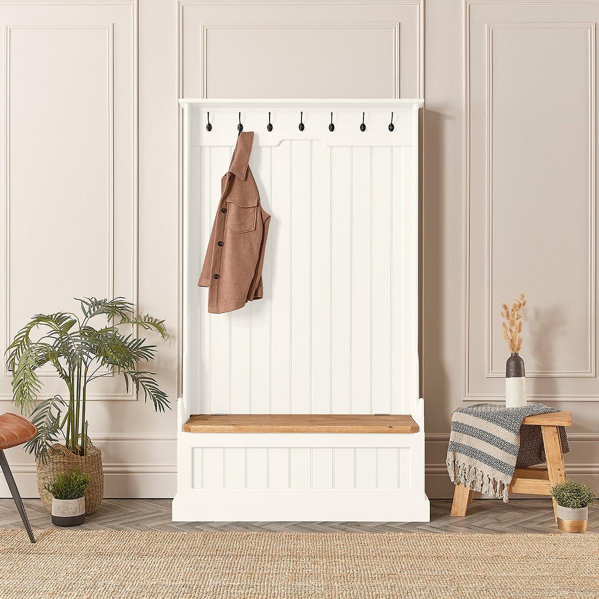 - Painted Monks Bench with Coat Hooks