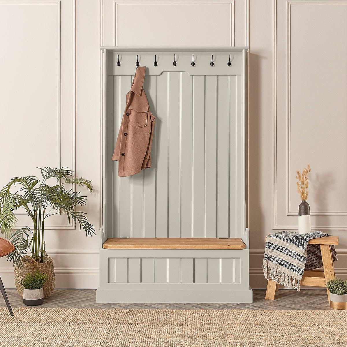 - Seven steel coat hooks allow you to store coats, scarves and bags