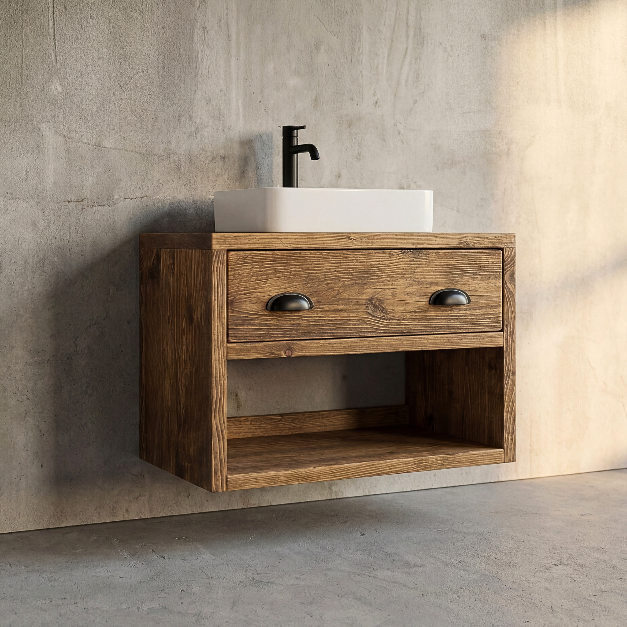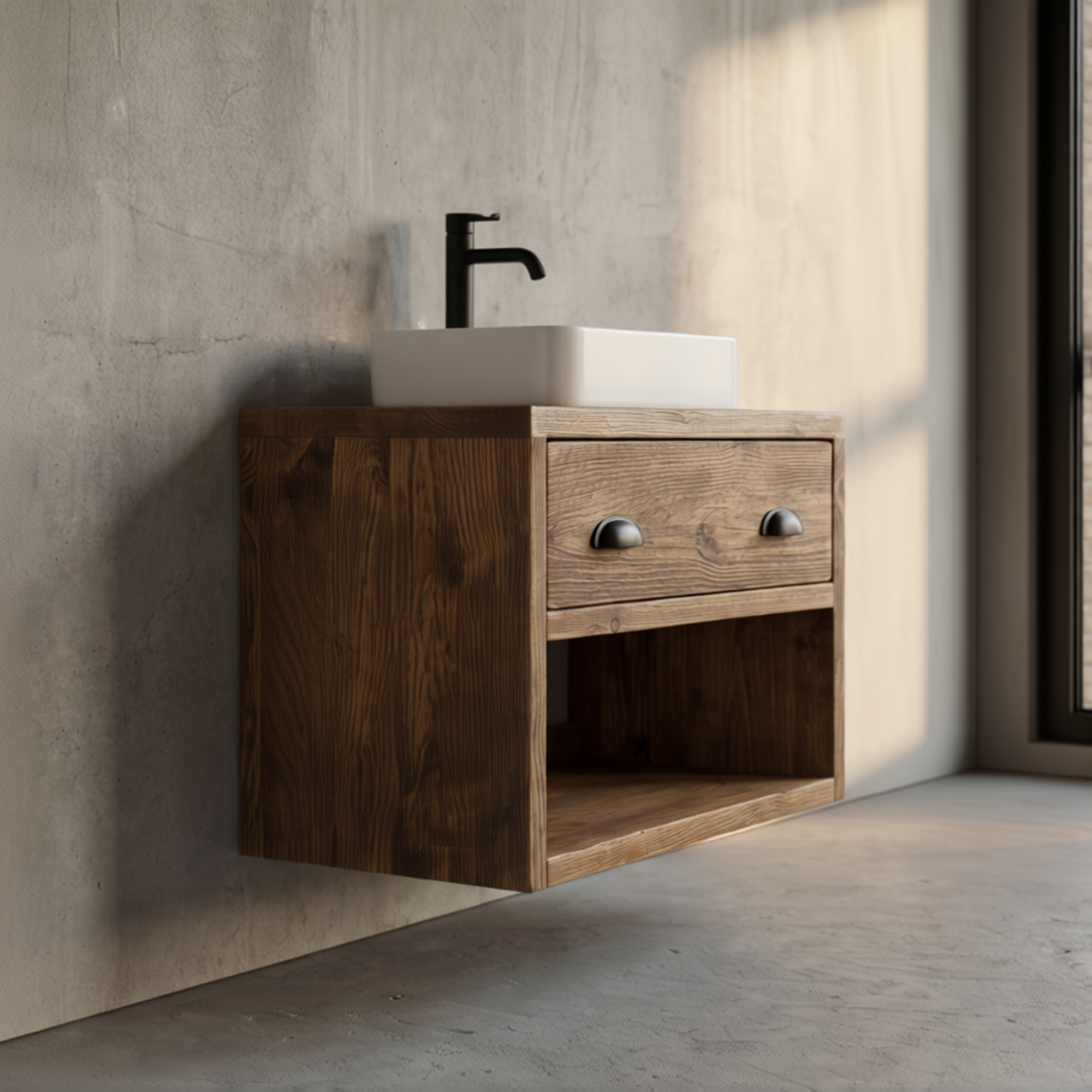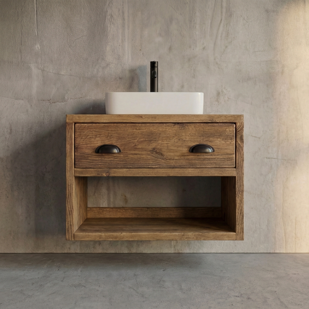 Wall Mounted Wood Vanity Unit